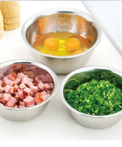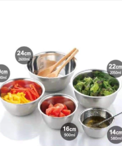 - Lòng thau sâu, dày rất tiện dụng, dùng làm bánh, trộn đồ ăn và có thể nấu trên bếp