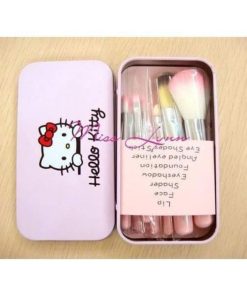 Bộ cọ trang điểm 7 món nhỏ xinh màu hồng kèm hộp đựng Hello kitty
