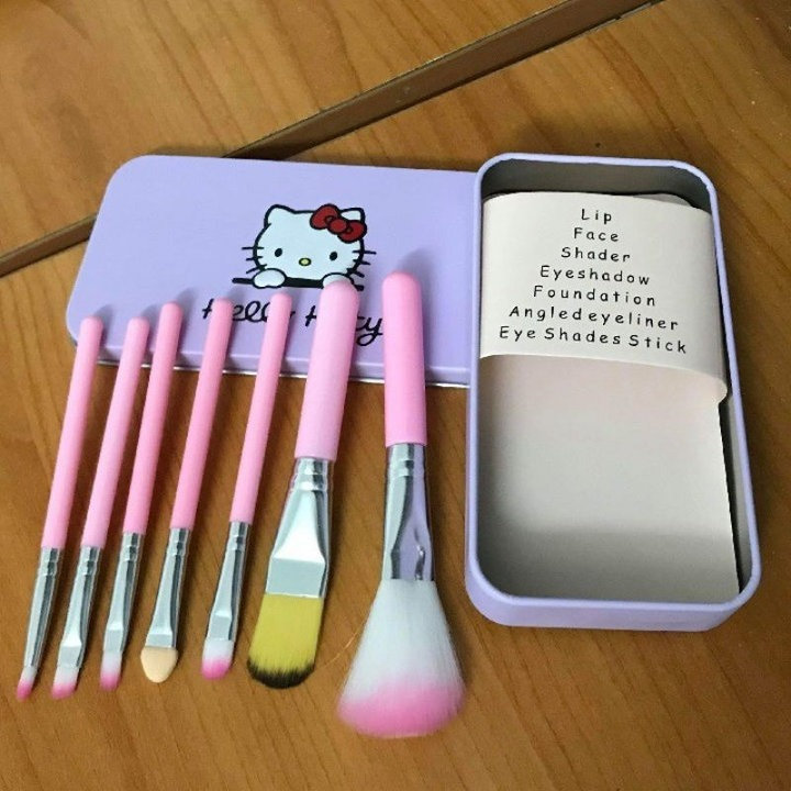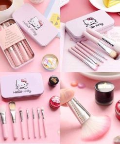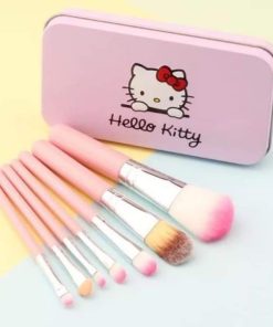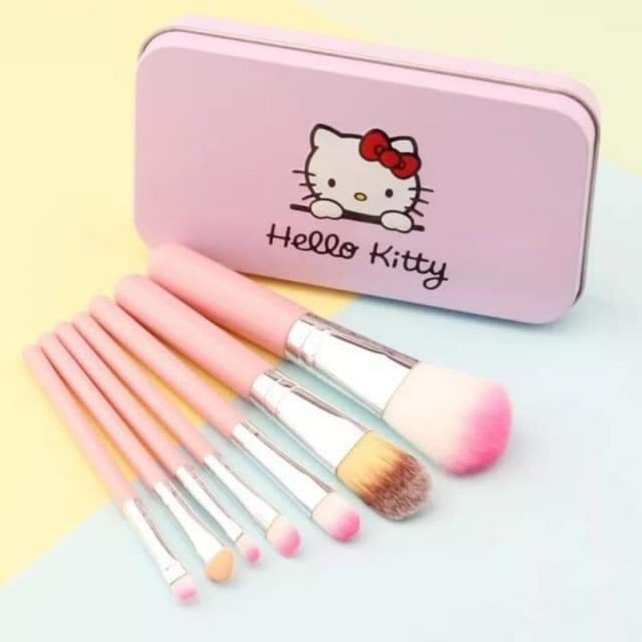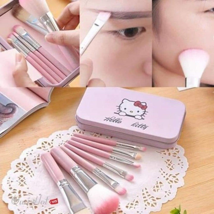Bộ cọ trang điểm 7 món nhỏ xinh màu hồng kèm hộp đựng Hello kitty