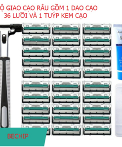 - Tên sản phẩm: Bộ Dao Cạo Râu Gồm 1 Thân Dao Cạo, 36 Lưỡi Dao và 1 Tuýp Kem Cạo – Bechip