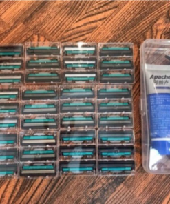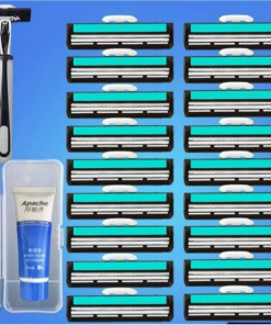 - Bộ dao gồm: 1 dao cạo để gắn lưỡi + 36 bàn cạo kèm dao lam + 1 tuýp kem cạo râu ( cho dễ cạo)