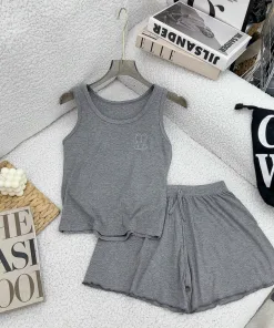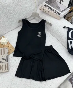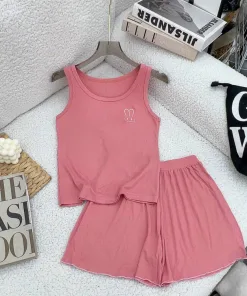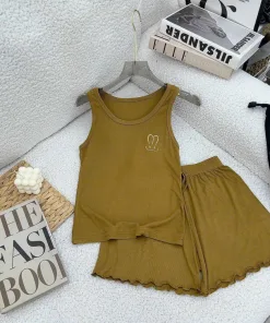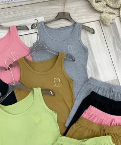 Set gốm 1 áo 3 lỗ sát nách có thêu hình thỏ và 1 quần đùi cạp chun co dãn