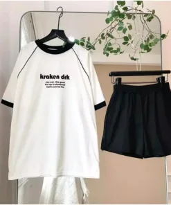 – Tên Sản phẩm: BỘ ĐỒ NỮ THỂ THAO 3158 CHỮ THÊU VIỀN ÁO PHÔNG KRAKERA DRK + QUẦN ĐÙI CỘC TĂM LI