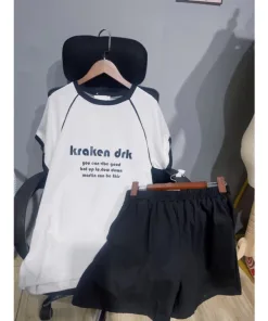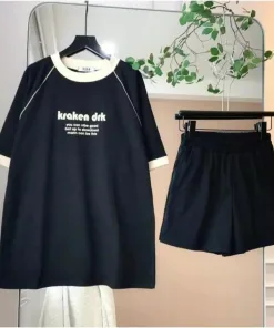 – Tên Sản phẩm: Bộ đồ nữ thể thao 3158 chữ thêu viền áo phông KRAKERA DRK + QUẦN ĐÙI CỘC TĂM LI