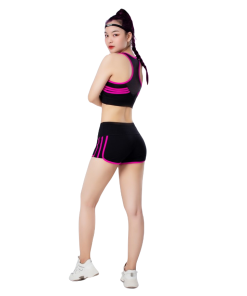 - Tên sản phẩm: Bộ Đồ Tập Thể Thao Nữ Quần Đùi Áo Bra Phối Viền Màu DN105 Màu Đen Viền Hồng – Ansa Sport