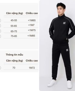 - Áo Khoác Kéo Khóa & Quần Jogger Dáng Suông Rộng: Cấu trúc form chuẩn, ôm vừa vặn (Form Slim Fit) nhưng vẫn tạo sự cử động thoải mái tối đa cho mọi hoạt động.