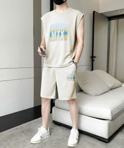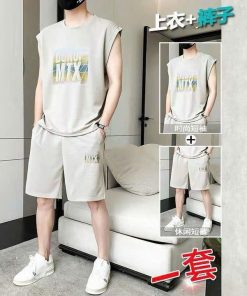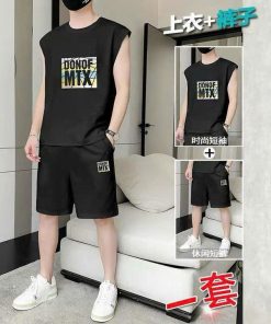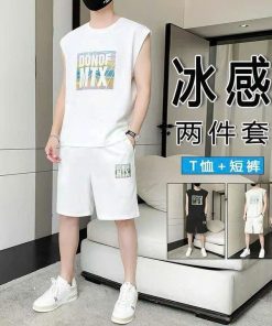 Bộ đồ thể thao nam không tay đẹp trai bộ áo thun ngắn tay bằng thun lạnh.