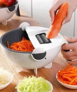 Bộ dụng cụ 9 trong 1. 5 lưỡi dao các loại, 1 rổ, 1 chậu, 1 bảo vệ tay, 1 cây nạo