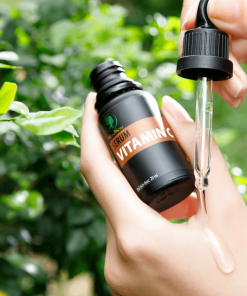 - Rửa mặt sạch sau đó nhỏ vài giọt Serum Vitamin C lên khắp mặt, có thể thoa nhiều hơn chỗ vùng bị thâm, nám, sạm nám hay sẹo.