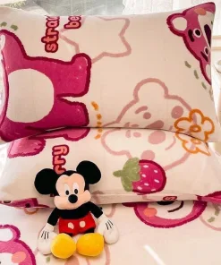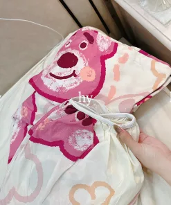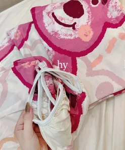 - Tên sản phẩm: Bộ ga giường gấu dâu 3 món
