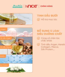 – Thành phần chính: Chiết xuất tinh dầu bưởi, dầu macca, dầu argan, keratin, collagen.