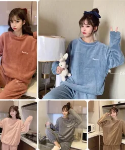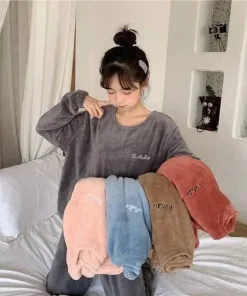 BỘ MẶC NHÀ THÊU CHỮ CHẤT LIỆU LÔNG NHUNG DÀY DẶN, MỀM MẠI DÀNH CHO BẠN NỮ