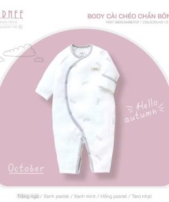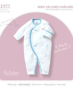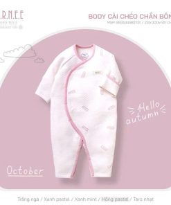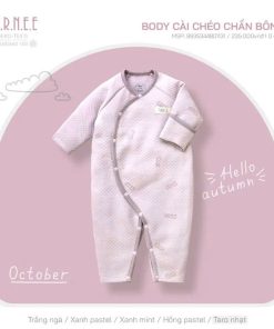 Body có nhiều gam màu pastel dịu nhẹ, tinh tế như: hồng pastel, trắng ngà, xanh mint, xanh pastel, tím nhạt… phù hợp cho cả bé trai và bé gái. Thiết kế dài tay liền thân giúp giữ ấm toàn diện, bé có thể mặc cả ngày lẫn đêm.