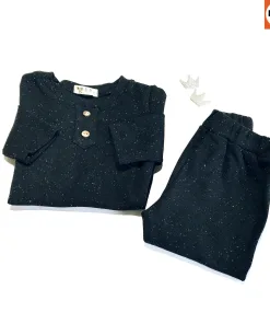 - Quần áo chất liệu nỉ tăm cao cấp, co giãn nhẹ, thấm hút mồ hôi tốt. Không bị xù lông, an toàn và không gây ngứa cho bé.