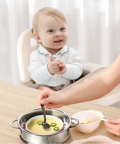 Xửng hấp được làm từ inox 304 cao cấp sang chảnh, giúp mẹ và bé thoải mái chế biến các món ăn.