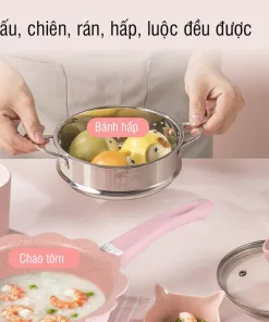 Bộ sản phẩm gồm: 1 nổi, 1 chảo, 1vung, 1 xửng hấp inox
