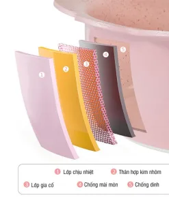 Thiết kế với bề mặt lòng nồi là men đá hoa cương chống trầy xước, lớp chống dính với độ bền cao, lớp corundum trắng chống mài mòn, lớp phủ chống chịu nhiệt độ cao.