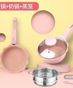 Bộ nồi chảo là món đồ ăn dặm cho bé làm từ hợp kim cao cấp tráng men hoa văn đá chống dính cực tốt sẽ là trợ thủ đắc lực hỗ trợ mẹ chế biến các món ăn dặm cho bé. Nồi chảo thích hợp với mọi loại bếp.