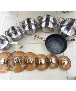 Bộ gồm 6 món: nồi lớn, nồi nhỏ, nồi vừa và chảo giúp cho khách hàng có thể nấu nướng một cách đơn giản, tiện lợi.