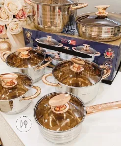 Bộ gồm 6 món: nồi lớn, nồi nhỏ, nồi vừa và chảo giúp cho khách hàng có thể nấu nướng một cách đơn giản, tiện lợi.