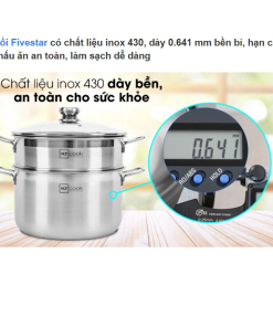 - Bộ nồi Fivestar có chất liệu inox 430, dày 0.641 mm bền bỉ, hạn chế rỉ sét, nấu ăn an toàn, làm sạch dễ dàng