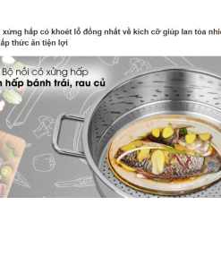 - Lòng xửng hấp có khoét lỗ đồng nhất về kích cỡ giúp lan tỏa nhiệt tốt, hấp thức ăn tiện lợi