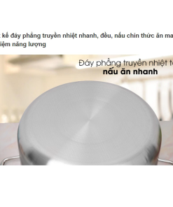 - Thiết kế đáy phẳng truyền nhiệt nhanh, đều, nấu chín thức ăn mau, tiết kiệm năng lượng
