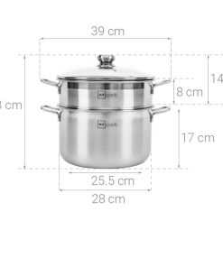- Kích thước:Nồi: 28 x 17 x 39 cm, Xửng: 28 x 8 x 39 cm