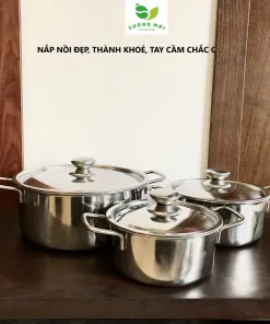- Bộ nồi Inox cao cấp sang trọng với chất liệu inox 304 an toàn tuyệt đối cho sức khỏe.
