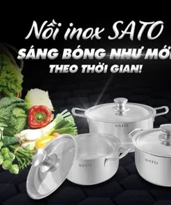 - Bộ nồi inox 3 đáy chất liệu inox 201 bền tốt, luôn sáng bóng, an toàn sức khỏe người dùng.
