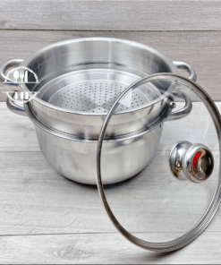 Bộ sản phẩm gồm một nồi và một xửng hấp nên có thể sử dụng cho nhiều mục đích nấu nướng tại gia đình. Đa năng: luộc gà, nấu canh, hấp xôi