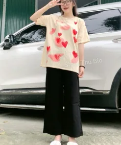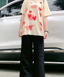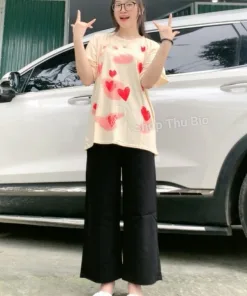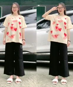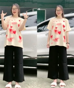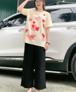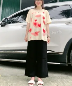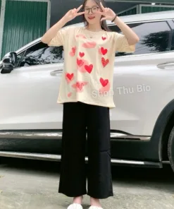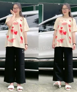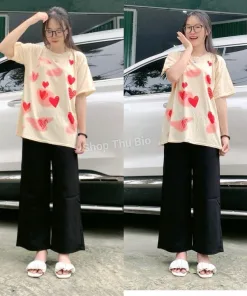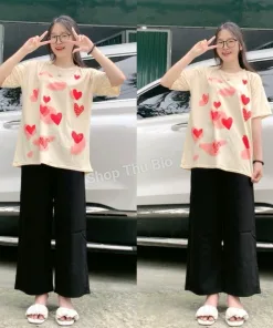 – Tên Sản phẩm: BỘ NỮ QUẦN ỐNG RỘNG ĐEN + ÁO TIM BE