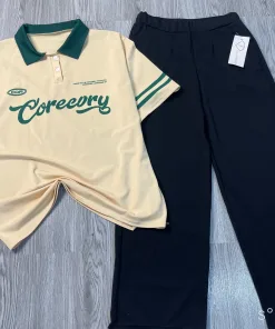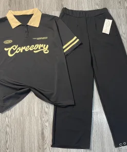 – Tên Sản phẩm: Bộ nữ, Set quần ống rộng đen + áo polo COREEVRY