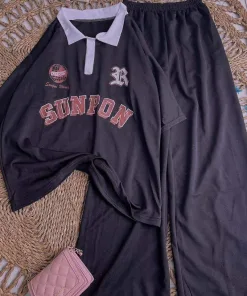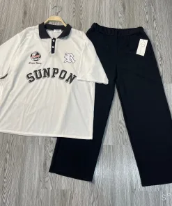 – Tên Sản phẩm: Bộ nữ,Set quần ống rông cạp chun + polo Sunpon cotton su