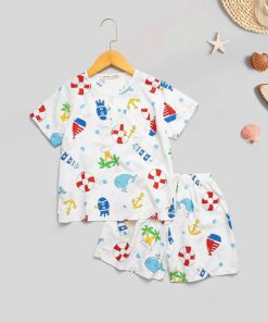 Bộ Pyjama Bé Trai, Đồ Bộ Ngủ Bé Trai Ngắn Tay Chất Tôn Mềm Mát Thoải Mái Mặc Ở Nhà Hoạ Tiết Biển Từ 8-40kg Dành Cho Bé Trai