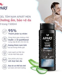 Đây là sự kết hợp hoàn hảo giữa sức mạnh nam tính và sự dịu dàng tinh tế – phù hợp làm quà tặng cho người thân, bạn bè, cặp đôi hoặc gia đình. Sữa tắm của Apart giúp làm sạch nhẹ nhàng, cung cấp độ ẩm cần thiết và mang lại hương thơm thanh lịch, lưu hương lâu trên da.