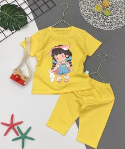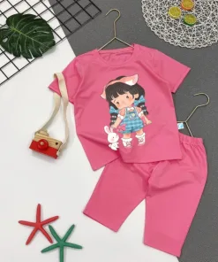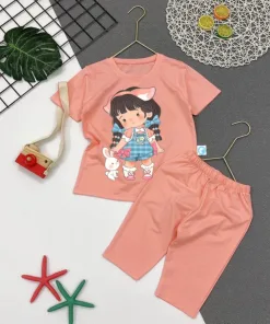 Bộ Quần Áo Bé Gái Lửng In Hình Bé Gái Và Thỏ Đáng Yêu – Be Yourself