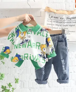 - Áo thun chất liệu da cá cao cấp, co giãn nhẹ màu sắc đẹp, tươi sáng, bắt mắt. Quần Jean co giãn 4 chiều, thấm hút mồ hôi tốt. Không bị xù lông, an toàn và không gây ngứa cho bé.