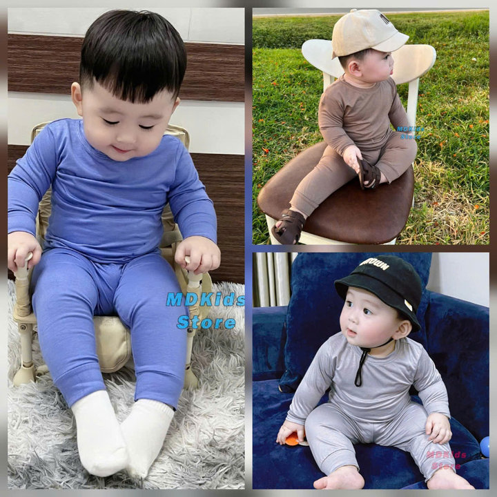 Bộ Quần Áo Thun Lạnh Tay Dài – Quần Dài Combo 1: Ca Cao, Môn, Xám