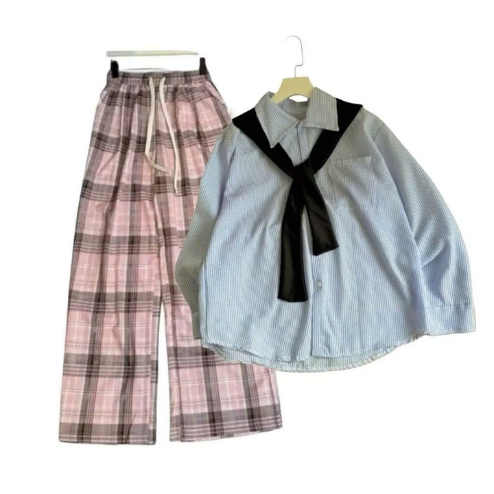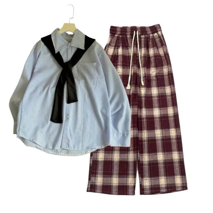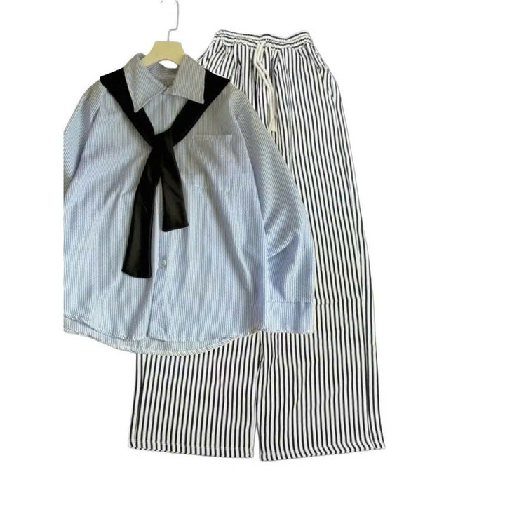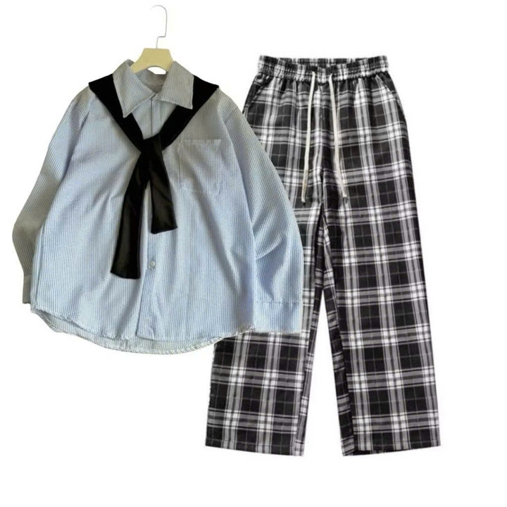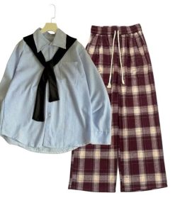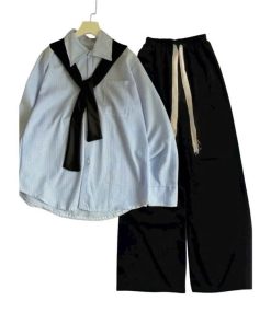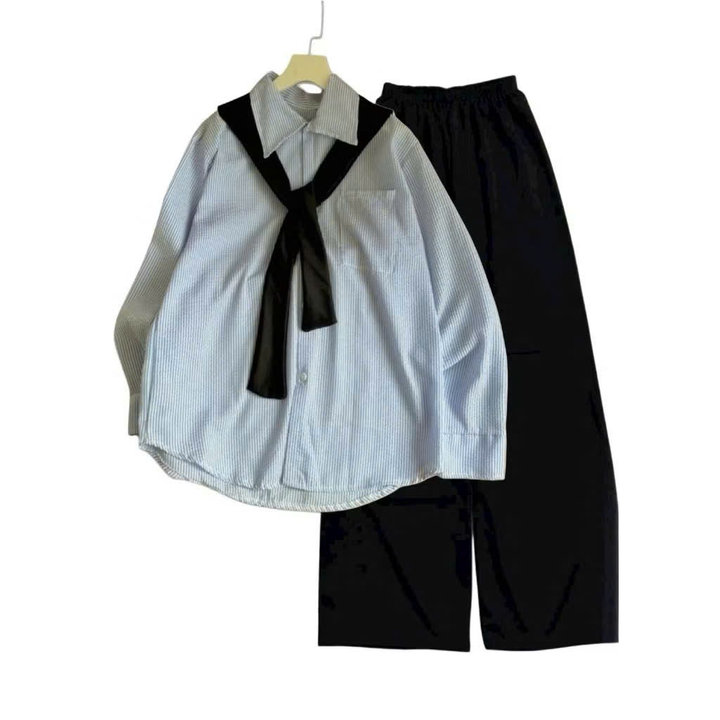 Mô Tả Sản Phẩm:quần rộng chất đũi xốp kẻ VẰN+và áo sơ mi