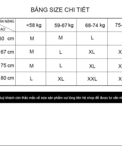 – Size XL: Cao: 1m70-1m74, Nặng 62-72kg
