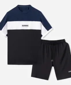 📌 Thông tin sản phẩm bộ thể thao nam: Bộ Thể Thao Nam Cộc Tay cổ tròn Chất Liệu CVC Cá Sấu Cao Cấp phối 3 màu – Men's Style