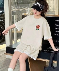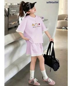 1. Tên sản phẩm : Bộ Thun Ngắn Tay Bé Gái Viền Ren In Hoa Diện Hè Năng Động từ 12-45kg Cho Bé Gái