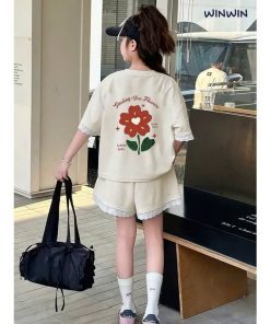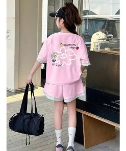 Bộ Thun Ngắn Tay Bé Gái Viền Ren In Hoa Diện Hè Năng Động từ 12-45kg Cho Bé Gái