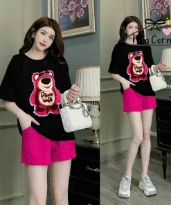 BỘ THUN SHORT IN HÌNH GẤU DÂU MB55 – MIN CORNER