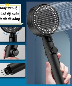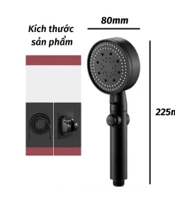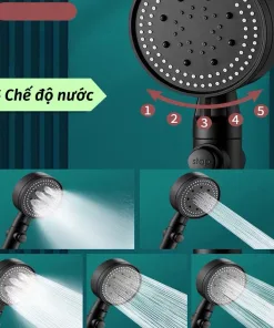 THÔNG TIN SẢN PHẨM: BỘ VÒI HOA SEN ĐẦU VÒI TĂNG ÁP 5 CHẾ ĐỘ TIẾT KIỆM NƯỚC MÀU ĐEN SANG TRỌNG(DÂY + VÒI SEN)