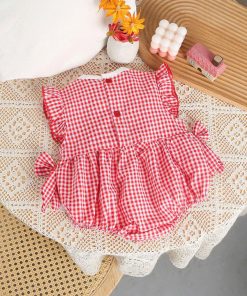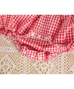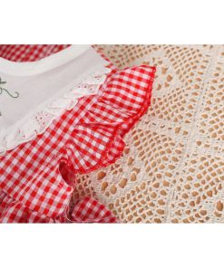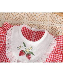 – Thiết kế : Body cổ yếm với kiểu dáng dễ thương, giúp bé gái sơ sinh thoải mái vận động và dễ dàng thay đồ. Hoạ tiết caro cổ điển kết hợp với hình dâu tây xinh xắn, tạo điểm nhấn nổi bật và đáng yêu cho bé