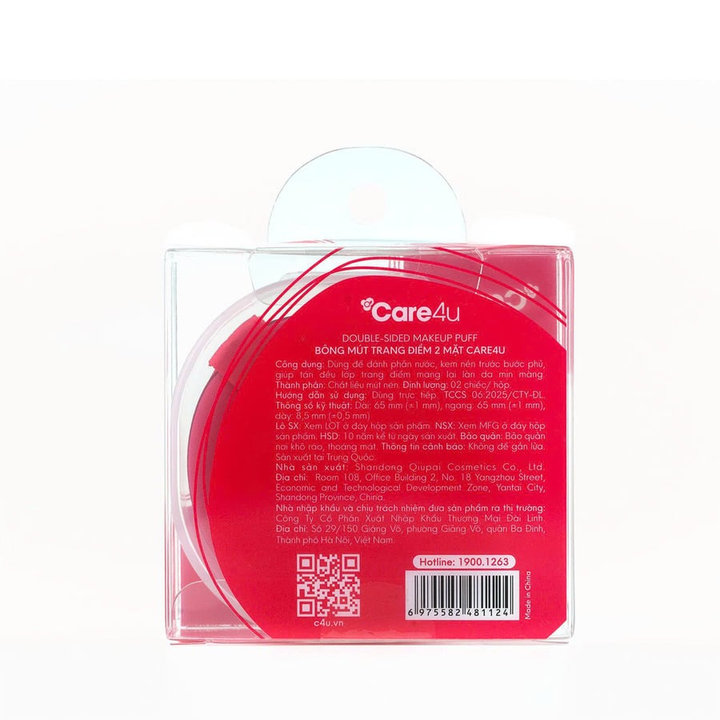 Bông mút trang điểm 2 mặt Care4u với thiết kế hai mặt sử dụng linh hoạt, giúp bạn dễ dàng tán đều phấn nước và kem nền.