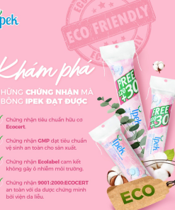 Bông tẩy trang Ipek thành phần 100% bông cotton được sản xuất bởi công ty Ipek Idrofil Pamuk – công ty hàng đầu Đông Âu về sản xuất bông an toàn.
