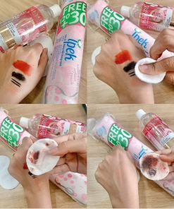 HDSD: Lấy bông tẩy trang và thấm dung dịch tẩy trang vừa đủ miếng bông, nhẹ nhàng lau lên mặt, mắt, môi và cổ. Đối với lớp trang điểm không thấm nước, giữ miếng bông lên vùng da đó trong vài giây.